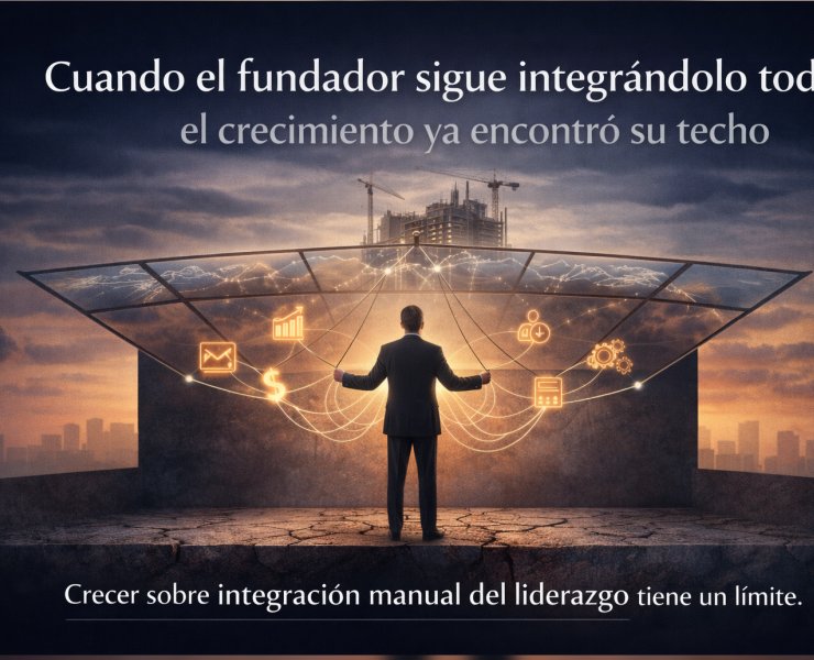 Durante etapas previas al crecimiento, un fundador fuerte puede integrar manual y presencialmente casi todo: decide rápido, destraba conflictos, corrige desviaciones, alinea áreas y sostiene una coherencia que la estructura todavía no sabe producir sola.